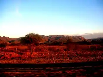 Sierra de las Quijadas con su distintivo tono rojizo desde la Ruta Nacional 20