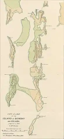 Las siete islas de Bombay eran territorios portugueses del siglo XVI que se extendían frente a la costa oeste de la India, que fueron entregados a Inglaterra bajo este título como parte de la dote de Catalina de Braganza cuando se casó con Carlos II en 1661. Las islas habían sido anteriormente parte de los imperios indígenas como la dinastía Silhara y el Sultán de Gujarat antes de que fueran capturados por los portugueses en 1534. Después de adquirirlos como dote, Carlos II alquiló las islas a la Compañía de las Indias Orientales en 1668 por £ 10 al año. Hacia 1845, las islas se habían fusionado[1] en una masa de tierra por medio de proyectos de recuperación de tierras múltiples. La isla resultante de Bombay se fusionó más tarde con las islas cercanas de Trombay y Salsette que se encuentran al noreste y al norte respectivamente para formar la Gran Bombay . Estas islas ahora constituyen la parte sur de la ciudad de Mumbai.