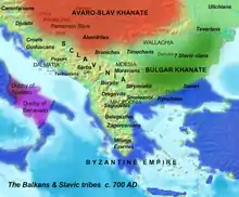 Las siete tribus eslavas o siete clanes eslavos (en búlgaro, Седемте славянски племена, Sedemte slavyanski plemena, o Седемте рода, Sedemte roda) fue una unión de tribus de la llanura danubiana que participó, junto a los búlgaros de Asparuh, en la formación del Primer Imperio búlgaro en 680−681.[1] La unión surgió a mediados del siglo VII y recibió ataques del imperio bizantino desde su mismo establecimiento.