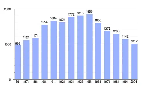 Gráfica de evolución demográfica de Siligo entre 1861 y 2001 |