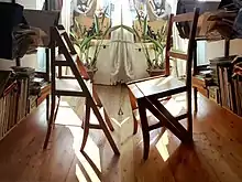 Una silla de escalones, silla de biblioteca, silla de escalera, silla convertible o silla Franklin, es un mueble que se pliega para convertirse en una silla o en un pequeño conjunto de escalones o escaleras. Construir uno (generalmente al estilo de corte lateral-diagonal) es un proyecto de bricolaje popular. [1] [2] [3]