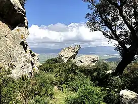 ![]() La roca de la "Tortuga", situada en el flanco este de las rocas naturales que sirvieron de muralla defensiva natural al oppidium de la Silla del Papa. | ||