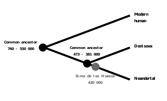 En 2010, la genética ya reveló que cuando el humano moderno salió de África hace entre 75 000 y 50 000 años, al menos dos poblaciones de hombres arcaicos, los de Neandertal y los de Denísova, ocuparon Eurasia.[63][64] En 2014, la comparación de un ADN de Neandertal y otro de Denísova también demostró que compartían un ancestro común antes de divergir hace entre 381 000 y 473 000 años.[65] Ese mismo año, la datación de los restos humanos de la Sima de los Huesos en unos 430 000 años animó a seguir estos estudios genéticos para conocer sobre todo los vínculos de parentesco entre estos hombres arcaicos con el hombre moderno. Todos estos análisis genéticos sobre ADN fósil fueron efectuados por los equipos del fundador de la investigación del ADN fósil, Svante Pääbo, en el Instituto Max Planck de Antropología Evolutiva de Leipzig.