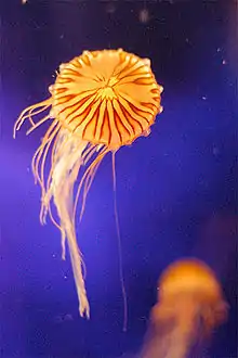 En el reino animal, la simetría radial se considera primitiva respecto a la simetría bilateral; presenta simetría radial primaria los cnidarios, los ctenóforos y algunas esponjas. No obstante, la simetría radial perfecta es rara;[1] usualmente se modifica en birradial, como en ctenóforos y muchas anémonas, con dos planos que dividen al animal en las aguas del exterior se ve la simetría radial iguales, o tetrarradial, como muchas medusas, con cuatro planos de simetría. Los equinodermos poseen una simetría pentarradial secundaria derivada de la simetría bilateral.