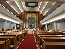 En la restauración del Templo central en 1997, se conservaron los volúmenes del edificio, transformando profundamente el interior, rediseñado por Piero Pinto y Giancarlo Alhadeff. Se abrieron nuevas ventanas en los dos lados principales y se levantó el techo en la parte central del matroneo. El contraste entre colores vivos, rojo y dorado, y colores claros, blanco y avellana, contribuye a un efecto de gran luminosidad. Pero quizás el elemento más característico de la renovación lo den los vitrales multicolores de las veinticuatro ventanas, obra del artista neoyorquino Roger Selden, que ofrecen un imaginativo collage de símbolos judíos -donde se incluyen la Estrella de David, el shofar, la menorá, el lulav- y letras del alfabeto hebreo.