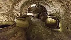 - Bodega: situada bajo una bóveda de cañón rebajada, contiene un conjunto de grandes tinajas semienterradas que al parecer se empleaban para almacenar aceite y otros alimentos.