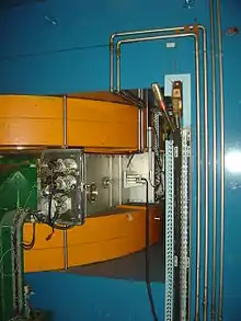Este "problema" se corrige en el sincrociclotrón mediante un sistema automático que varía el período del campo eléctrico alternante empleado para transferir energía a las partículas, de manera que sea siempre igual al período del movimiento de los iones acelerados.