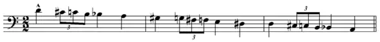 Debido a su ambigüedad tonal, esta línea cromática transmite urgencia y tensión. El tema suena dos veces antes de pasar a la orquesta, y representa el descenso de Dante a los infiernos. Volverá periódicamente a través del movimiento (en varias formas) y proporciona una fuerza conductora tras la música, empujando a la sinfonía hacia su clima literario, el suelo helado del infierno.
