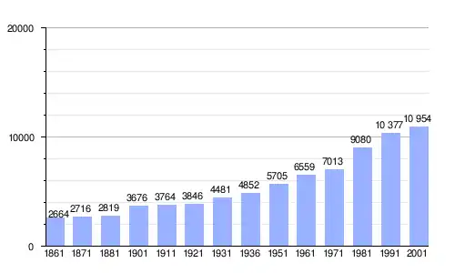 Gráfica de evolución demográfica de Siniscola entre 1861 y 2001 |