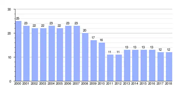 Gráfica de evolución demográfica de Sino entre 2000 y 2018 |
