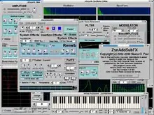 Un sintetizador de software es un software que emula el funcionamiento y sonido que producían los antiguos sintetizadores, además de producir más modernos y mejores sonidos. Entre algunos sintetizadores de software se encuentran Malström para Reason, HALion para Cubase y Sytrus para FL Studio