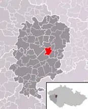 Se encuentra ubicada al noreste de la región, en la cuenca hidrográfica del río Berounka —un afluente izquierdo del río Moldava que, a su vez, lo es del Elba—, y cerca de la frontera con la región de Bohemia Central.[1]