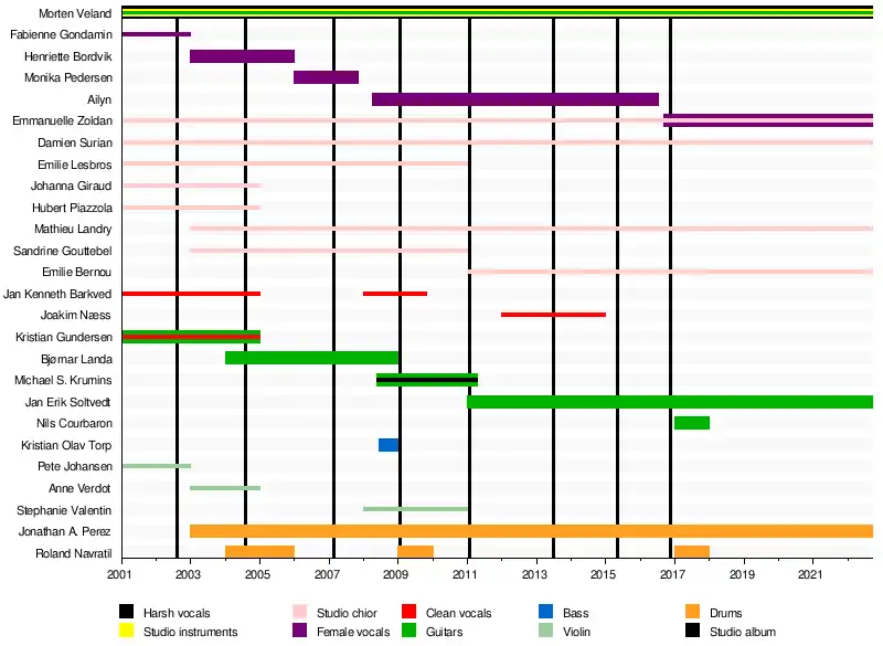 - Morten Veland – Voz Gutural, Voz Limpia (en estudio), Guitarra, Bajo (en estudio), Teclado (en estudio), Programaciones (en estudio), Batería (en estudio) (2001 – presente)