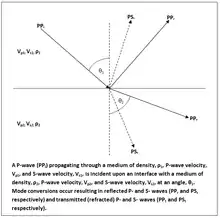La situación es mucho más complicada en el caso de que la onda incide en forma oblicua, debido a la conversión de modo entre ondas P y ondas S, y queda descrita por las ecuaciones de Zoeppritz. En 1919, Karl Zoeppritz obtuvo 4 ecuaciones que permiten determinar las amplitudes de las ondas reflejadas y refractadas en una interfase plana para una onda P en función del ángulo de incidencia y seis parámetros elásticos independientes.[1] Estas ecuaciones tienen 4 incógnitas y es posible resolverlas pero las mismas no permiten comprender de forma intuitiva como es que las amplitudes reflejadas varían con las propiedades de las rocas bajo estudio.[3]