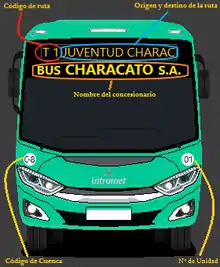 Los buses urbanos del sistema deben indicar la siguiente información con carácter obligatorio: