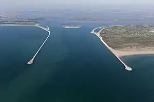 - Una esclusa para grandes envíos en la ensenada de Malamocco permite que las actividades portuarias continúen cuando las puertas están en funcionamiento