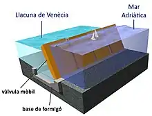 - El sistema cuenta con cuatro barreras móviles en las entradas de la laguna (dos en la entrada del Lido, una en Malamocco y una en Chioggia)