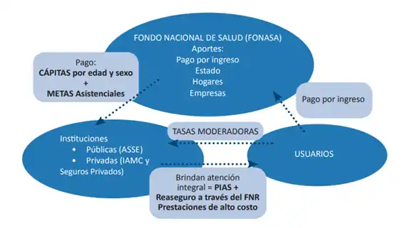 En el campo del financiamiento, el marco legal del aseguramiento público en salud está dado por la Ley 18.131 de Creación del Fondo Nacional de Salud (FONASA), del año 2007. Bajo la modalidad de aseguramiento a través de la Seguridad Social, se define al Fondo Nacional de Salud como el encargado de financiar el régimen de asistencia médica de sus beneficiarios, desde el cual se quiere asegurar una cobertura universal, así como una mayor equidad en el financiamiento.