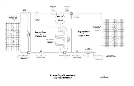 Diagrama o circuito de refrigeración para sistema de doble etapa