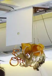 - Vuelo 30 de Qantas (2008) - Según el informe final, "un cilindro de oxígeno de un pasajero ... había sufrido una falla repentina y una descarga contundente de su contenido presurizado en la bodega de la aeronave, rompiendo el fuselaje en las proximidades del ala-fuselaje principal. El cilindro había sido impulsado hacia arriba por la fuerza de la descarga, perforando el piso de la cabina y entrando en la cabina adyacente a la segunda puerta principal de la cabina. Posteriormente, el cilindro había impactado el marco de la puerta, la manija de la puerta y los paneles superiores, antes de caer al piso de la cabina y salir de la aeronave a través del fuselaje roto ". [6] [7] No hubo víctimas mortales.