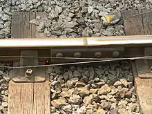 Los anclajes de carril o clips antideslizamiento, son unas piezas de acero flexibles que se unen a la parte inferior de la placa de asiento y se apoyan contra los lados de las traviesas para evitar el movimiento longitudinal del carril, ya sea por cambios de temperatura o por vibración.