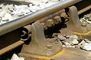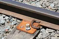 Los anclajes se fijaban al durmiente con pasadores de madera (espigas), tornillos, pernos o clavos.[38]
