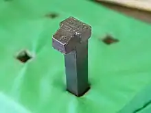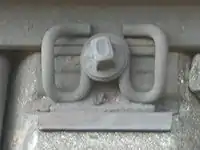 En la década de 1830, cuando aparecieron los carriles laminados con sección en T (con una o dos alas inferiores) y en I (denominados de cabeza de toro) era necesario utilizar anclajes de hierro fundido para sostenerlos.[35] Originalmente, se empleaban unas piezas clave de hierro para encajar a presión el carril en las mordazas verticales paralelas del anclaje; pero posteriormente fueron remplazadas por cuñas completamente de madera.[35] Estas cuñas, de madera de roble, se ablandaban con vapor, se comprimían con prensas hidráulicas y se almacenaban en una nave de secado. Cuando se insertaban en el anclaje, la exposición a la atmósfera húmeda hacía que la cuña se expandiera, sujetando firmemente el raíl.[36] Las cuñas podían estar dentro o fuera del carril. En Gran Bretaña, por lo general, estaban por fuera.[37]