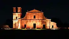 Las ruinas de la iglesia constituyen los restos más impresionantes y más justos de la antigua reducción. Su diseño es generalmente atribuido al jesuita Giovanni Battista Primoli, pero también fue atacada por el nombre de Francisco de Ribera, por lo menos como colaborador, y la galería debe haber sido producto de José Grimau. Fue trazada en estilo Barroco, y levantada a partir de 1735 en piedra arenisca. Puede quizás haber sido iniciada en 1720, como pensaba Lucio Costa, basado en una referencia ambigua de una carta de la época, y ha sufrido varias modificaciones a lo largo del tiempo. Primoli dejó obras muy tempranas en 1744, cuando se retiró para el Paraguay, y solo falta la carpintería y el techo, que fueron terminados en 1750.