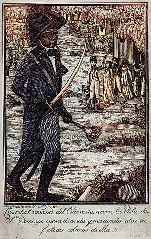 ![]() Enterado de las acciones del ejército francés acantonado en La Parte Española de la Isla de Santo Domingo, Dessalines invadió la parte parte Española de la isla al frente de 21,000 hombres. | ||||