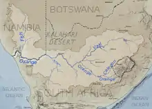 Curso del río Orange y principales afluentes en Sudáfrica.