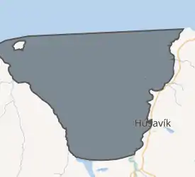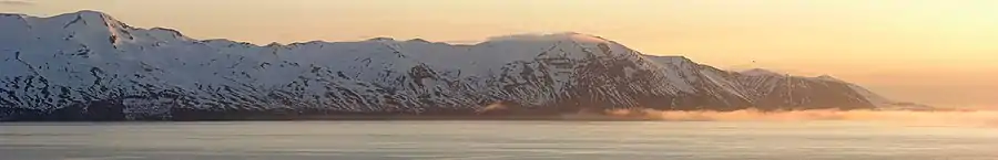 La población principal de la bahía es Húsavík, justo enfrente del Kinnarfjöll, una cadena montañosa al otro lado de la bahía y de nieves perpetuas. Su punto más alto alcanza los 1100 msnm y es de origen volcánico.