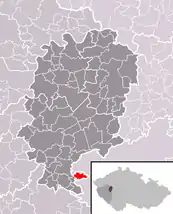 Se encuentra ubicada al noreste de la región, en la cuenca hidrográfica del río Berounka —un afluente izquierdo del río Moldava que, a su vez, lo es del Elba—, y cerca de la frontera con la región de Bohemia Central.[1]