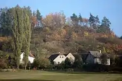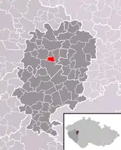 Se encuentra ubicada al noreste de la región, en la cuenca hidrográfica del río Berounka —un afluente izquierdo del río Moldava que, a su vez, lo es del Elba—, y cerca de la frontera con la región de Bohemia Central.[1]