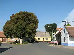 Se encuentra ubicada al sureste de la región, cerca de la orilla del río Morava —un afluente izquierdo del Danubio—, de la frontera con la región de Zlín y con Eslovaquia, y a poca distancia al sureste de la ciudad de Brno.[1]