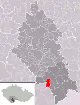 Se encuentra ubicada en el centro-sur de la región, en la zona de la selva de Bohemia, a poca distancia al sur de la ciudad de Praga, de la orilla del río Moldava —el más largo del país, afluente del río Elba— y al norte de la frontera con Austria.[1]
