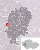 Se encuentra ubicada al noreste de la región, en la cuenca hidrográfica del río Berounka —un afluente izquierdo del río Moldava que, a su vez, lo es del Elba—, y cerca de la frontera con la región de Bohemia Central.[1]