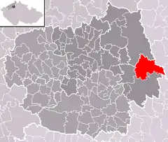 Se encuentra ubicada al este de la región, cerca de la orilla de los ríos Elba y Ohře, y de las regiones de Liberec y Bohemia Central.[1]