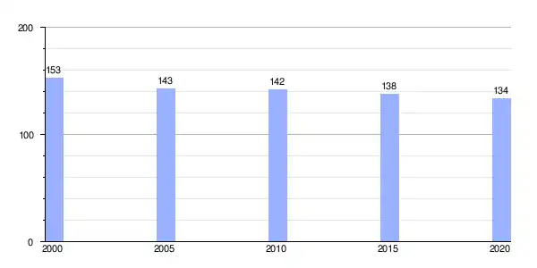 Gráfica de evolución demográfica de Sobrada entre 2000 y 2020 |