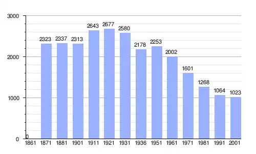 Gráfica de evolución demográfica de Socchieve entre 1861 y 2001 |
