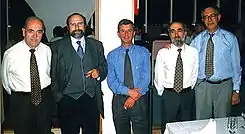 ![]() Los cinco primeros presidentes, en orden de sucesión en el cargo: Jaime Truyols Santonja, Antonio Goy Goy, Luis Sánchez de Posada, Antonio Perejón Rincón y Leandro Sequeiros San Román (foto: octubre de 1997). | ||