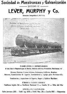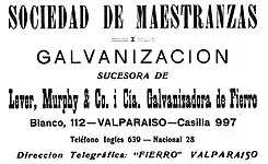 ![]() Publicidad de la Sociedad de Maestranzas y Galvanización, ca. 1913. | ||||