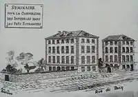 El Seminario (Séminaire des Missions Étrangères) fue creado en marzo de 1663, cuando Jean Duval, ordenado bajo el nombre de Bernard de Sainte Thérèse, nombrado obispo de Babilonia (actual Irak) en 1638, ofreció a los edificios abandonados de su Seminario de las Misiones a Persia, que había creado en 1644 en 128 Rue du Bac.[22] El 10 de marzo de 1664, el Padre Vincent de Meur fue nominado como el primer director del seminario, y oficialmente se convirtió en Superior del seminario el 11 de junio de 1664.