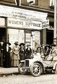 La Sociedad del sufragio de mujeres de Liverpool se estableció en 1894 en una reunión en enero en la del Movimiento por la Templanza de Liverpool en Hardman Street.[1] Otra sociedad había sido propuesta un mes antes por Emily Hornby en una reunión pública y después de un voto unánime,[2] fue fundada por Edith Allan Bright, Lydia Allen Booth y Nessie Stewart-Brown,[3] e inicialmente contaba con veinticuatro miembros.[2] La sociedad estableció su cuartel general en el número 6 Lord Street.[4] Millicent Fawcett, líder de la Unión Nacional de Sociedades de Sufragio Femenino, asistió a la primera reunión como oradora invitada. [5][6]