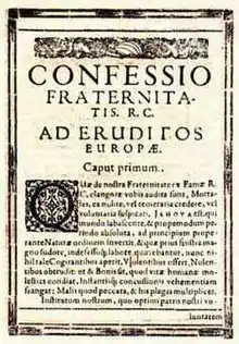 - Confessio Fraternitatis (Confessio oder Bekenntnis der Societät und Bruderschaft Rosenkreuz)