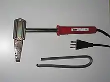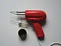 - Soldador de resistencia: la punta de cobre se calienta con una resistencia eléctrica, lo que la mantiene a una temperatura constante. Puede tener forma de martillo, punta, varilla u otras formas, en función del uso a que esté destinado.