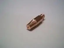 Todos los conductos van recubiertos por una tubería de goma y todo el conjunto forma la manguera que conecta la máquina con la pistola. En la punta de la antorcha va montada una buza exterior que canaliza el gas hasta la zona de soldadura. En el interior se encuentra un tubo de contacto que proporciona al hilo la corriente necesaria para realizar el arco de soldadura. Este tubo de contacto tiene su orificio interior calibrado para cada diámetro de hilo.