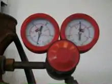 Estos reguladores de presión constan de dos manómetros: el primero llamado de alta presión y va pegado a la válvula de la botella que nos muestra la presión con que vienen cargadas de presión, ya sea la botella de oxígeno o la de acetileno. Y el segundo manómetro de baja presión, que nos permitirá regular la presión de trabajo.