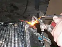 Se encuentra en aplicación en los trabajos de reparación de carrocerías para obturar taladros, unir elementos y para unir metales de distinta naturaleza. Como material de aportación se utiliza una aleación de cobre y zinc. Se suelda con una llama con exceso de oxígeno.