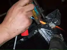 Debido a que el material fundido tiende a fluir hacia las zonas más calientes, la superficie exterior estará algo más caliente que la interior, por lo que el material tiene que ser aplicado exactamente en la unión.
