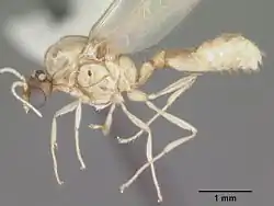 La reina es amarilla y muy grande (4.5mm) en comparación con otras especies del género. Habita lugares arenosos. Se encuentra en el sur de los Estados Unidos.[1][2]